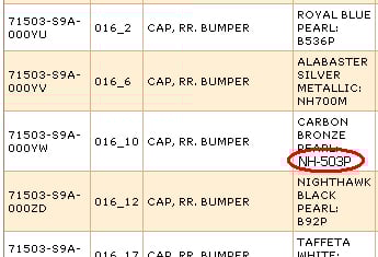 parts search and find a list of bumper caps - each with a bizare color name - none